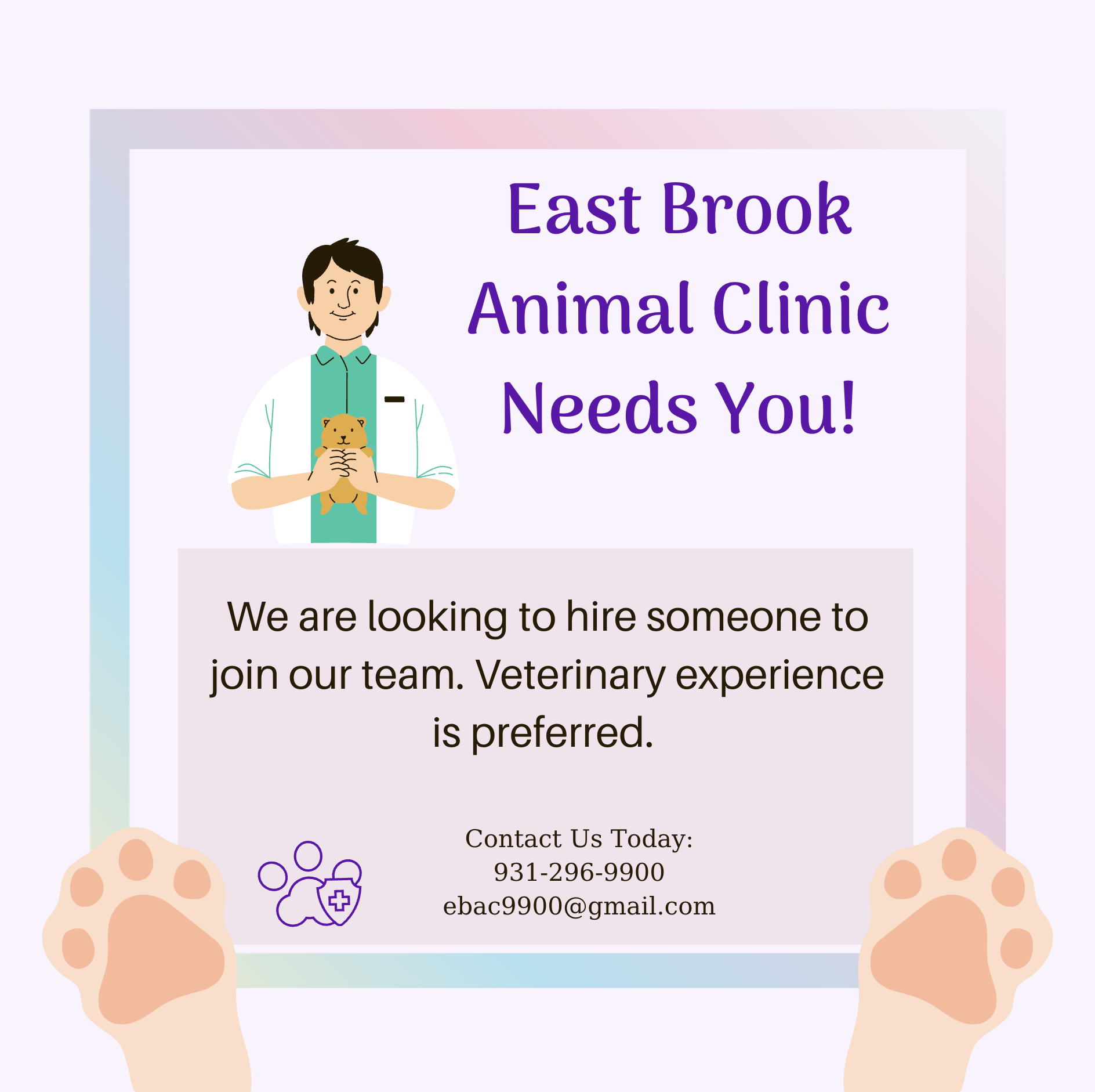 Our motto “We take care of four legged animals and the people who raise them,” describes us in that we are compassionate and caring about what we do.